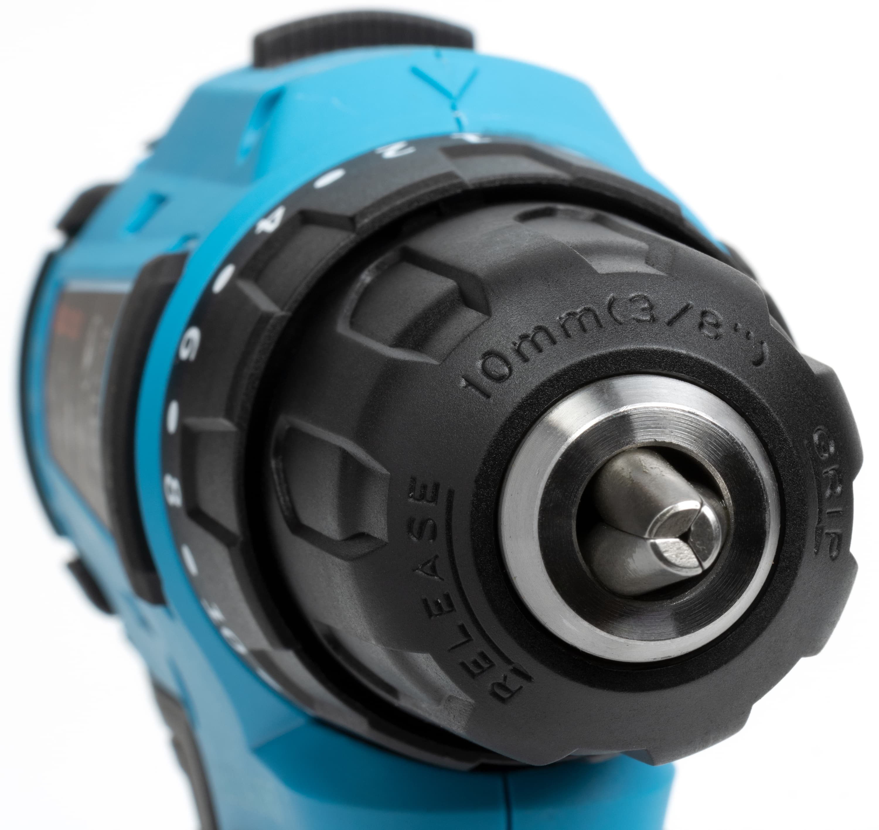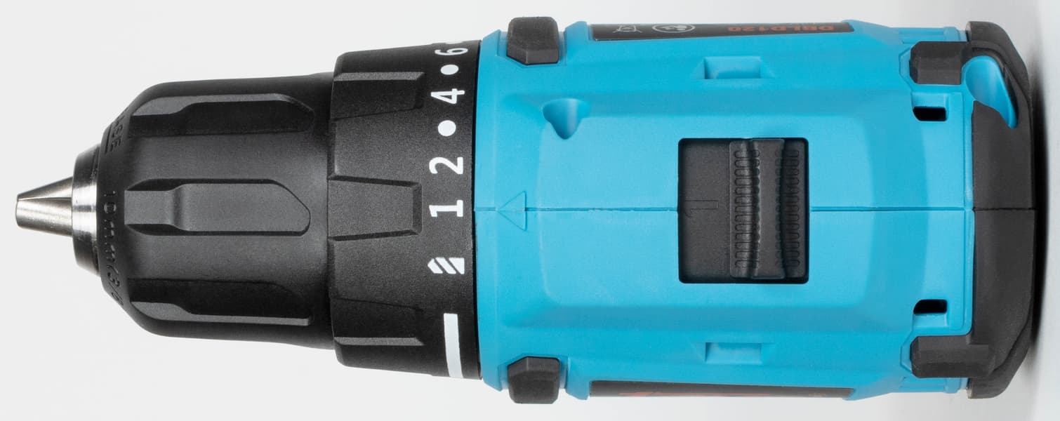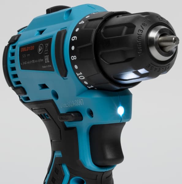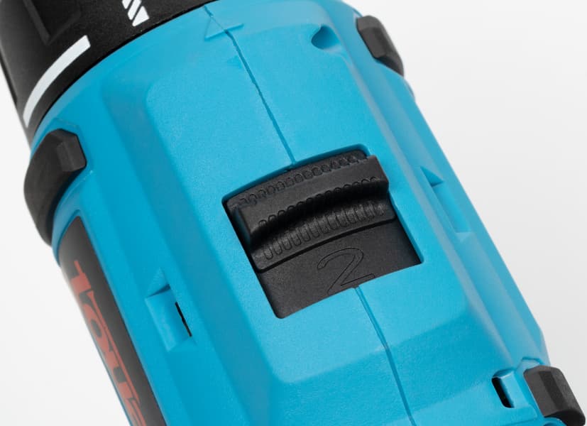 Кольцо с цифрами и делениями регулирует крутящий момент, каждое положение фиксируется с тактильно отчетливым и хорошо слышным щелчком. Крайнее деление переводит шуруповерт в режим сверления с отключением «трещотки».