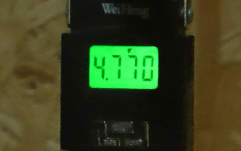 Защита в рассматриваемом шуруповерте срабатывает буквально через секунду после блокировки вала. Этого времени еле-еле хватает, чтобы электронный безмен зафиксировал результат. Видеосъемка десятка попыток, которая велась с частотой 50 кадров в секунду (больше не требуется), дала вот такой скромный результат: