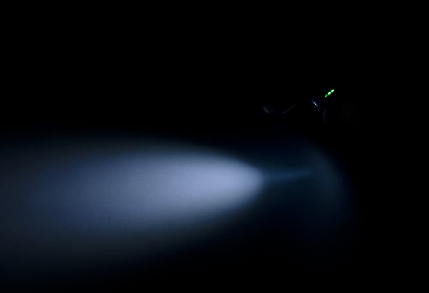 Подсветка включается при слабом нажатии на рычаг пуска и продолжает светиться в течение 10 секунд после отпускания рычага. Когда заряд батареи иссякает, этот фонарик начинает мигать синхронно с индикаторами оставшегося заряда.