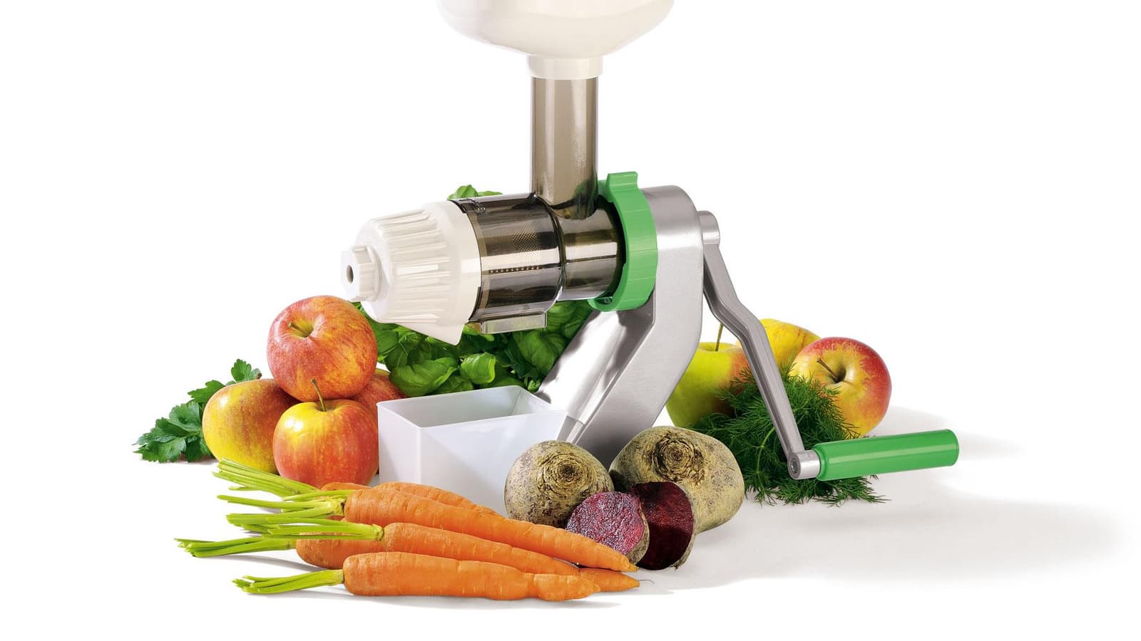 Это мануфактура. Управление соковыжималкой Tribest Z-710 сродни управлению теркой или яйцерезкой. Пользователь подает продукт и вручную приводит прибор в действие. В данном случае — с помощью крутящейся ручки.