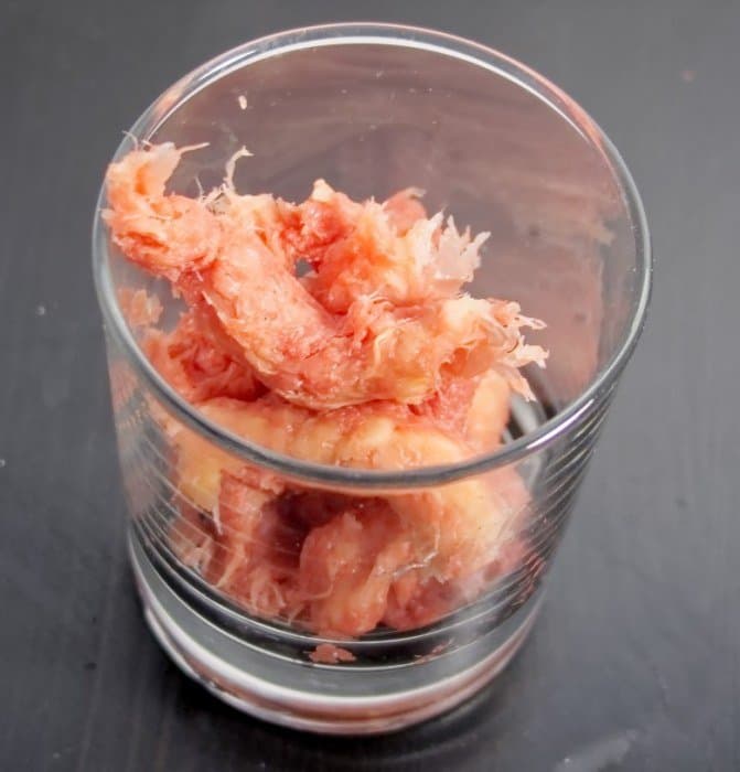 Мы взяли привычный нам розовый грейпфрут, обесшкурили и разделили на дольки.