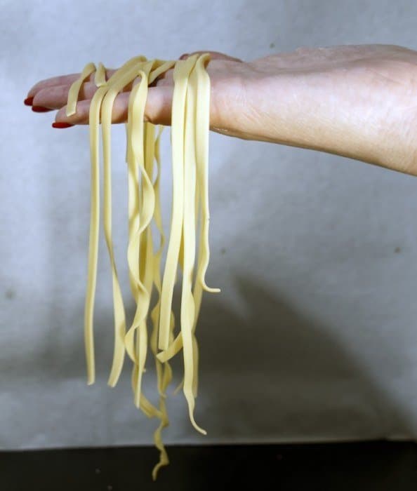 Изготовление лапши оказалось процессом весьма трудоемким. Но если бы нам предложили выбирать: этот путь или раскатывание теста и нарезание полосок вручную — мы однозначно выбрали бы первый вариант.