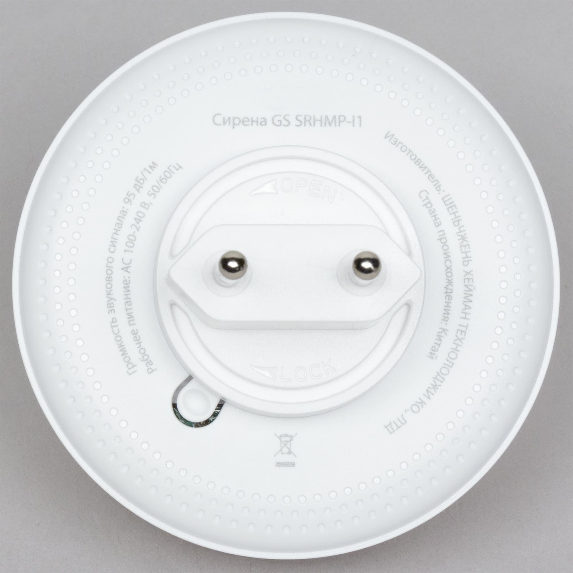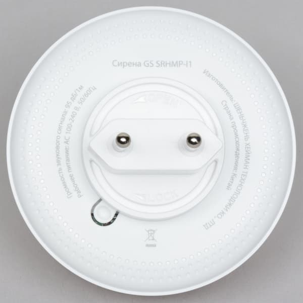 Включение сирены в систему Умного дома производится стандартно, зажатием скрытой кнопки прилагаемой шпилькой. При включении режима поиска мигает неяркий индикатор, расположенный рядом с потайной кнопкой.