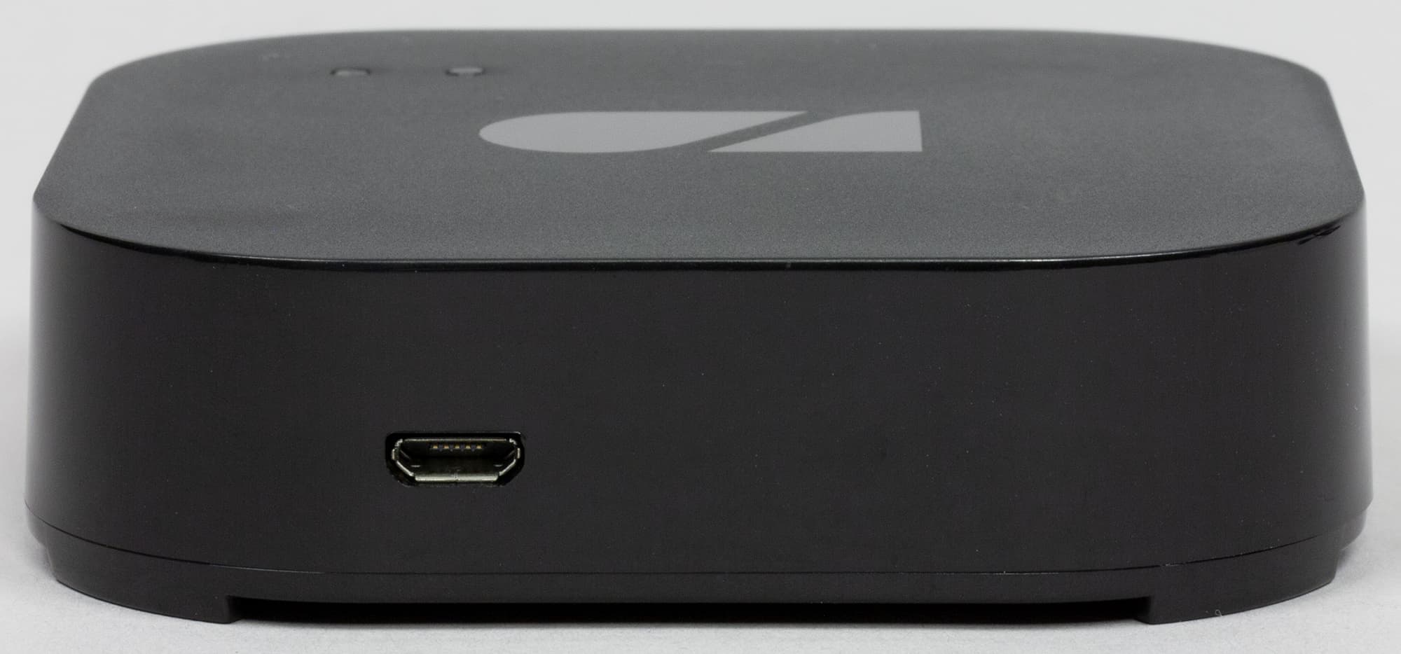 Этот центральный хаб, организующий работу всех датчиков, раскиданных по помещениям, представляет собой небольшую коробочку с двумя светодиодными индикаторами и без каких-либо органов управления. В комплекте с модулем имеется подробное руководство пользователя на русском языке и короткий кабель USB—Micro-USB. Он предназначен для подключения к цифровому ТВ-приемнику. Получая по нему питание, хаб также обменивается данными с приемником.