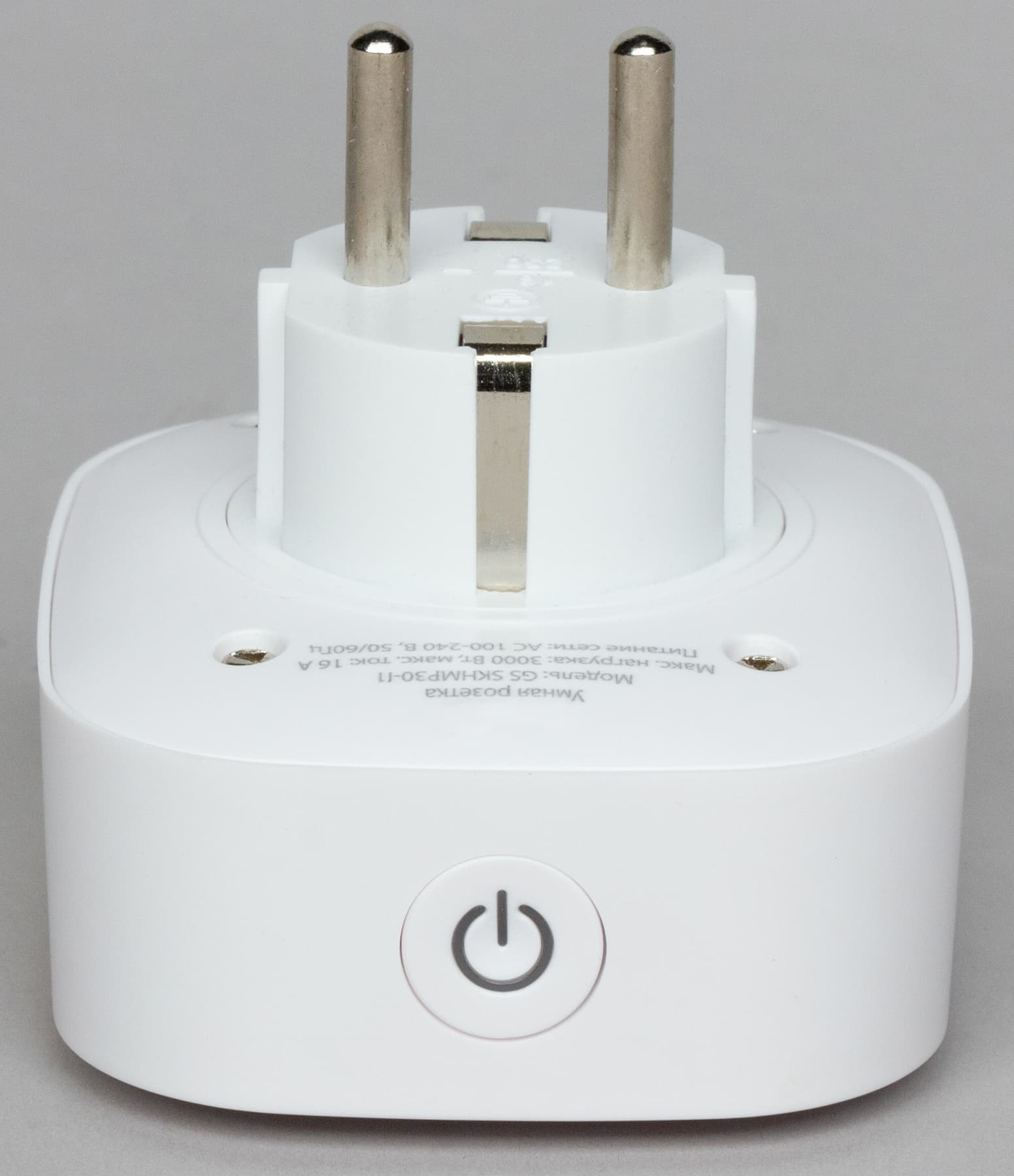 Единственная кнопка — она же индикатор работы — служит для подачи или прекращения питания, а также для подключения к модулю управления умного дома. Для перевода розетки в режим поиска базы нужно зажать эту кнопку и удерживать в нажатом состоянии в течение пяти секунд, пока индикатор не начнет мигать синим цветом.