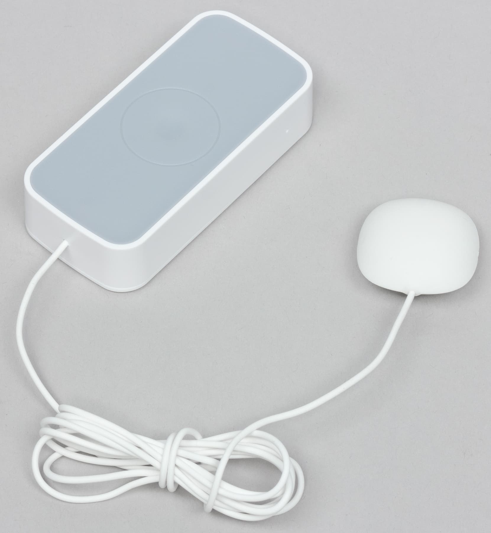 Устройство состоит из двух модулей: датчик, в котором размещены все электронные и радиокомпоненты для связи с базой (хабом), плюс вынесенный на длинном (1,2 м) гибком проводе внешний детектор.