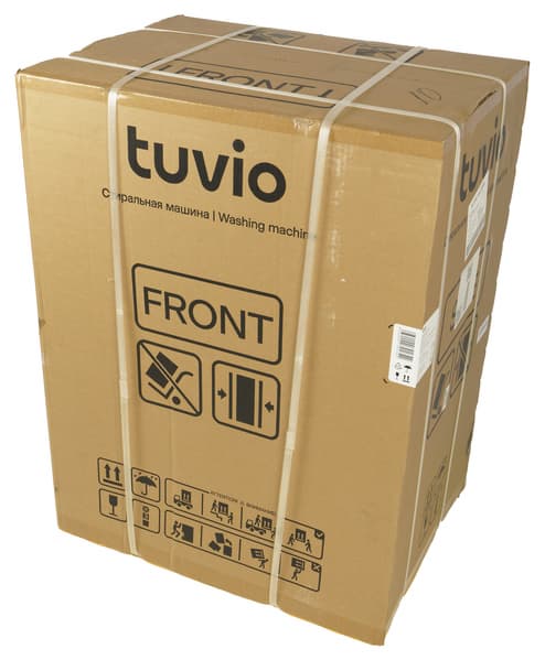 Стиральная машина поставляется в технологической упаковке из картона и пенопласта, усиленной капроновыми стропами. На ней самой минимум информации: только логотип производителя и транспортировочные инструкции.