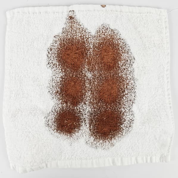 Чтобы посмотреть, можно ли улучшить результат предыдущего опыта, мы повторили наш эксперимент с теми же веществами и вторым комплектом белых махровых салфеток.