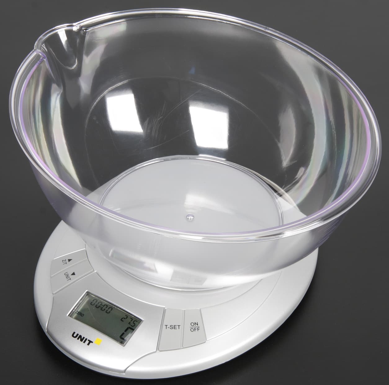 Для начала предлагаем посмотреть наш видеообзор кухонных весов Unit UBS-2155: