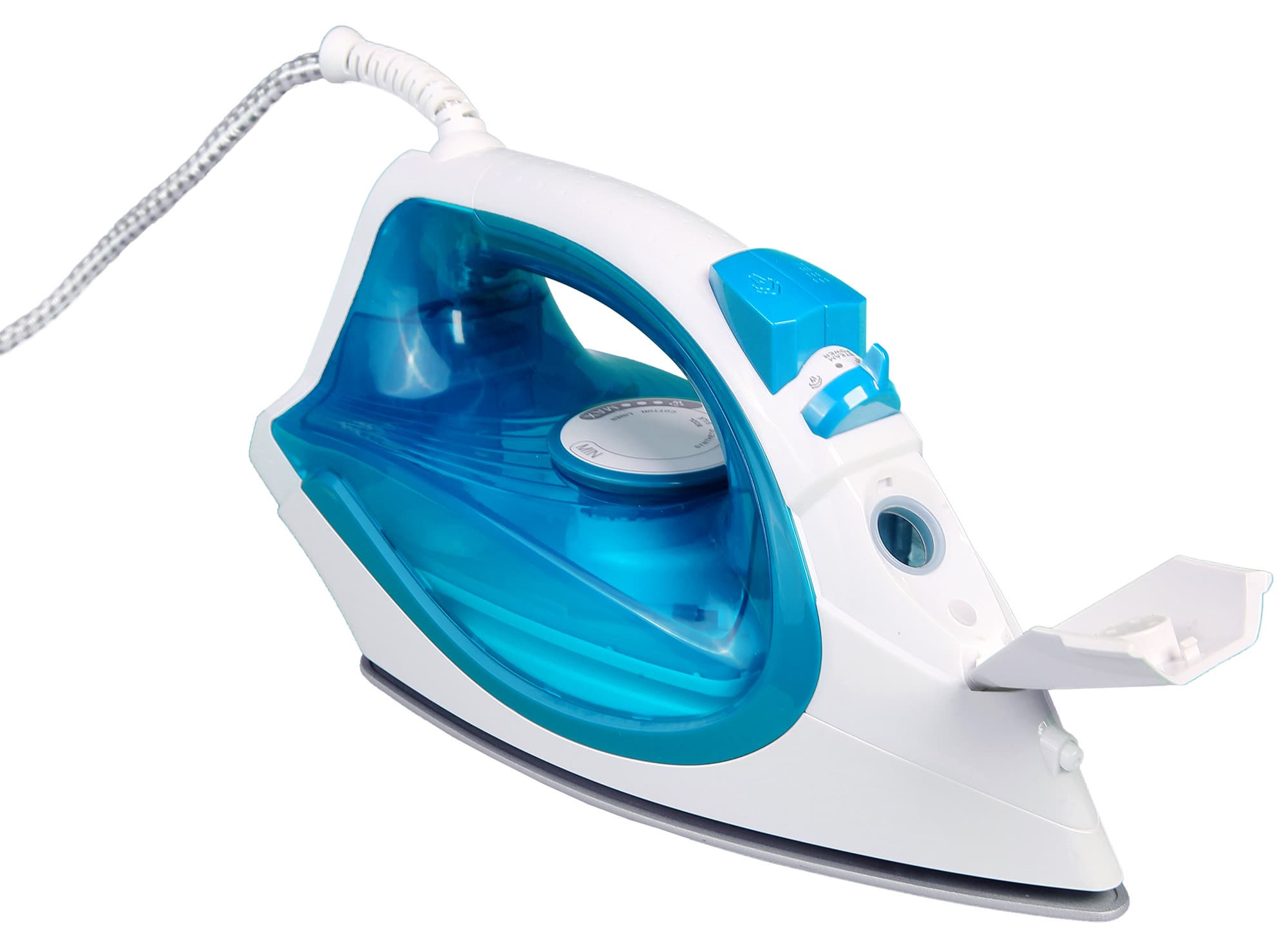 Утюг, несмотря на наличие пятен на подошве, скользил по ткани легко. Носик проникал в складки и узкие места, шнур не вызывал раздражения, пар равномерно увлажнял ткань.