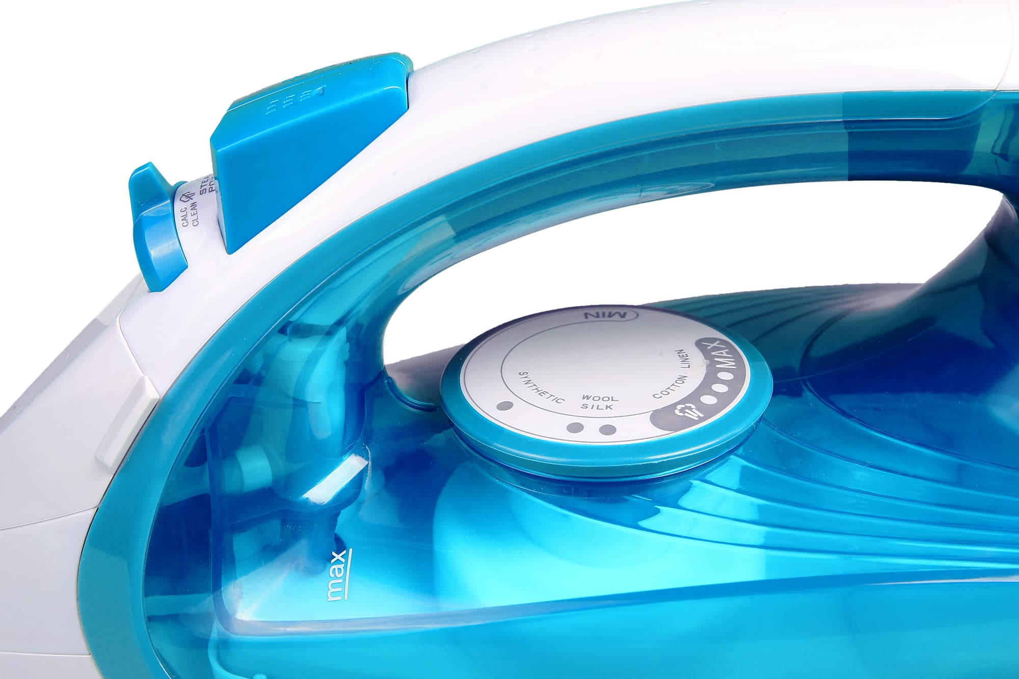 В зависимости от жесткости воды и интенсивности пользования прибором рекомендуется периодически проводить чистку утюга. Операция крайне незамысловатая, производится с помощью переключателя подачи пара. Нагрев устройство до максимума и переведя переключатель в крайнее левое положение, следует разместить утюг подошвой вниз над раковиной или ванной. Пар и капли горячей воды будут выходить через отверстия в подошве, вымывая остатки накипи и примеси. Скажем откровенно, мы не знаем, что именно происходит с выкипанием примесей и удалением накипи, но сам процесс очистки действительно несложен. Если держать утюг строго подошвой вниз, то риск получения ожога горячим паром или каплями кипящей воды отсутствует.
