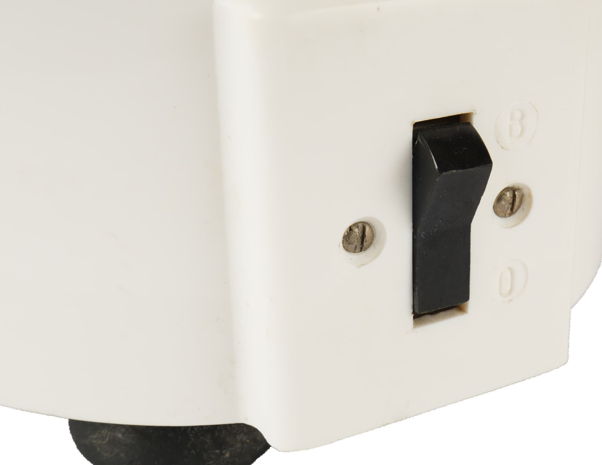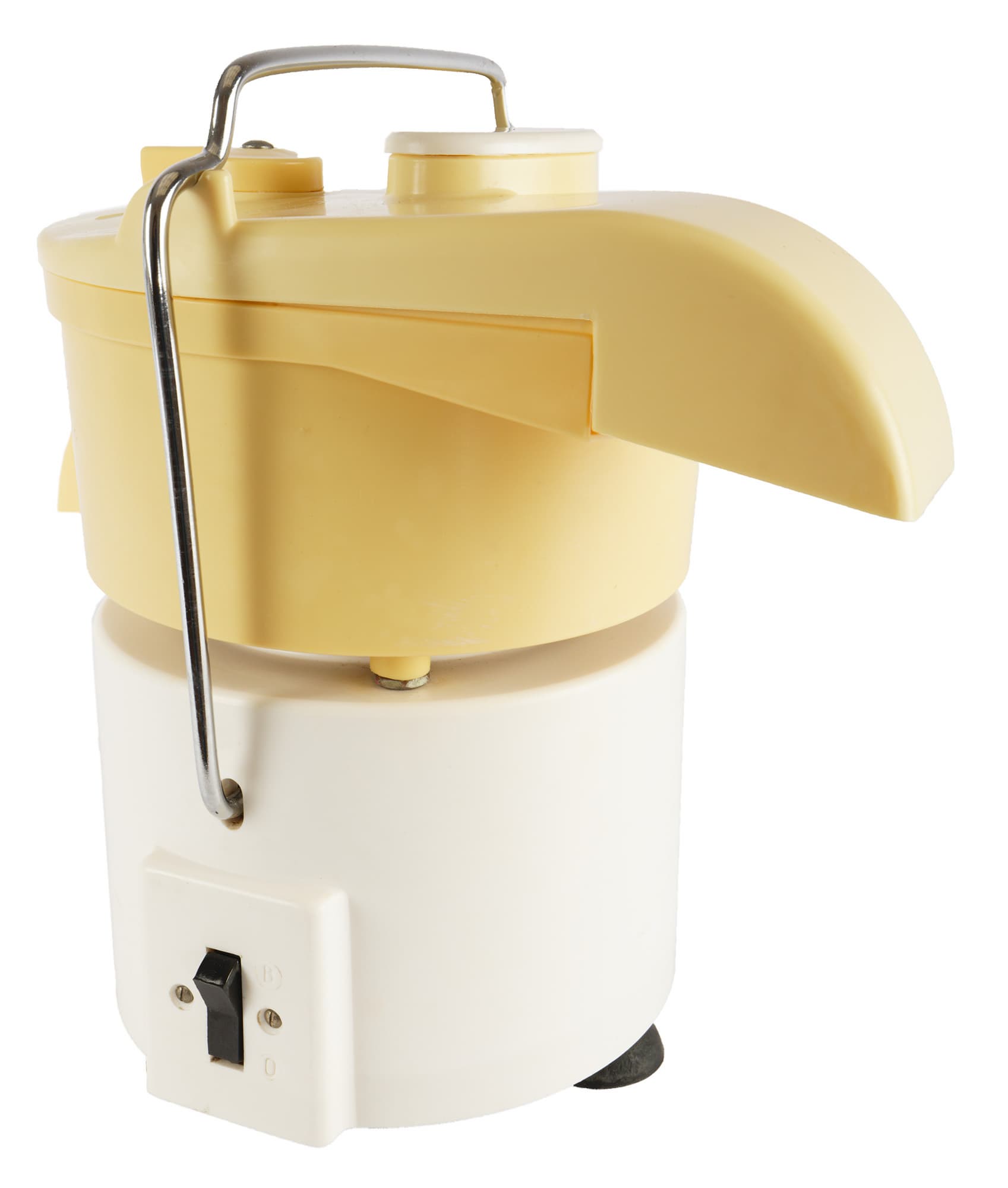 Без всех надстроек соковыжималка выглядит максимально брутально: как электродвигатель, заключенный в корпус из белой пластмассы с выключателем. Чем она, по сути, и является. Выключатель, к слову, очень похож на те, которые отвечали за включение света в квартирах советских времен. А может, это он и есть — зачем придумывать что-то новое?