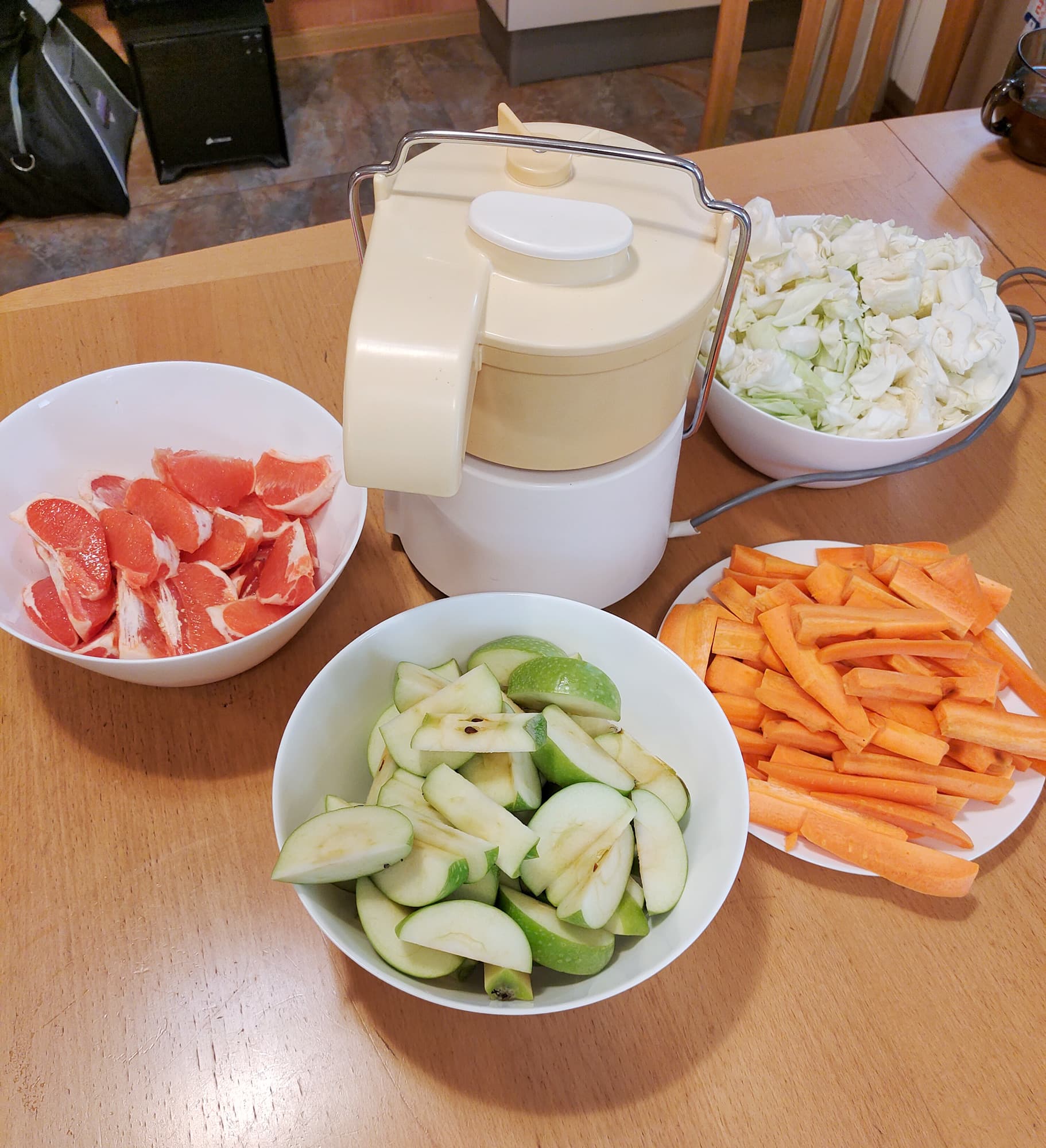 Начать мы решили со стандартных тестов iXBT.com для соковыжималок: яблоки, морковь, розовый грейпфрут и белокочанная капуста.