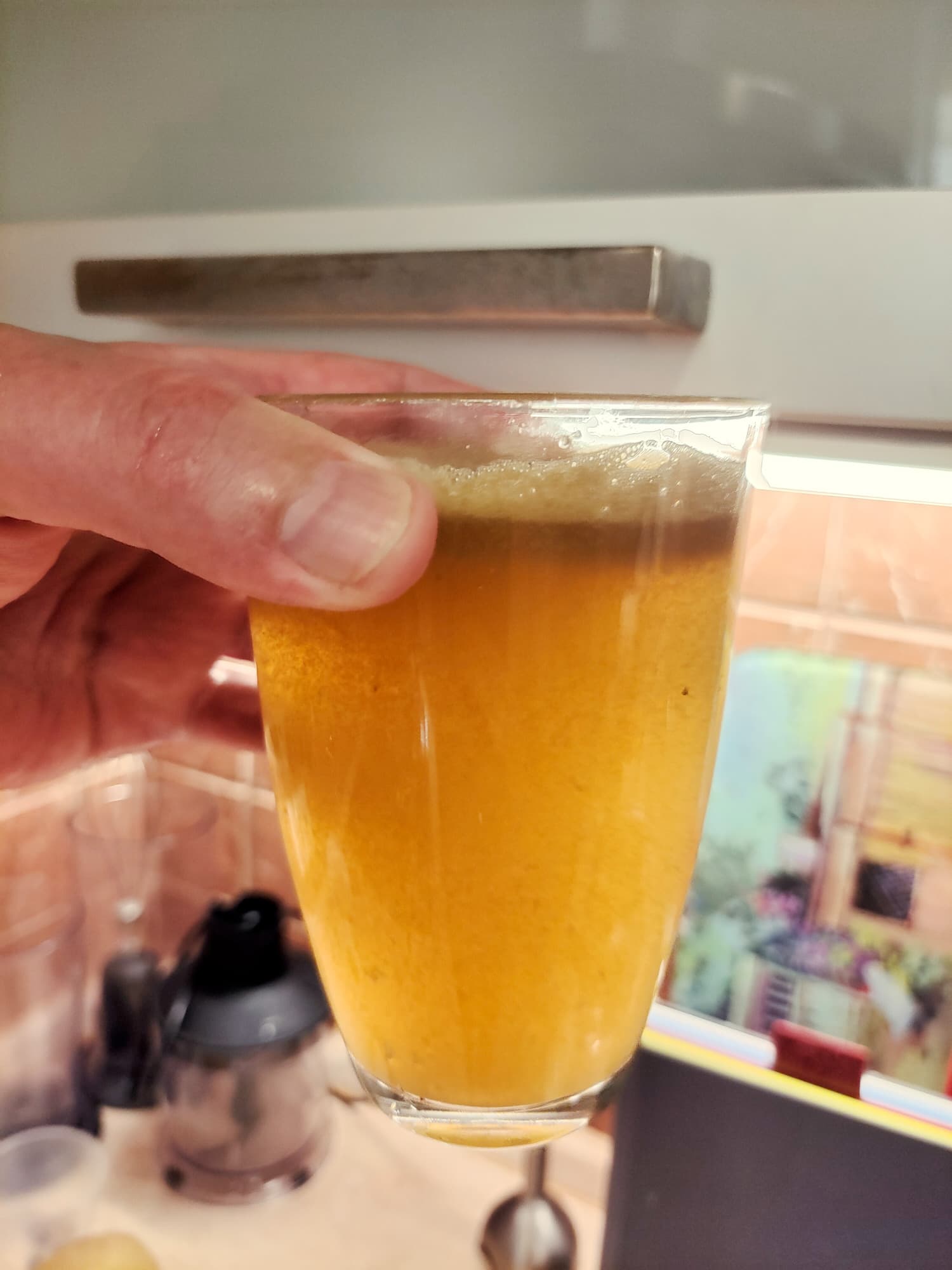С мягким фруктом соковыжималка вела себя почти идеально: время между сбросами жмыха увеличилось, сок лился рекой, вибрации почти не досаждали. Правда, из образовавшейся дыры в корпусе время от времени вылетал кусок жмыха, долетал до стенки и потом плавно сползал вниз. Хорошо, что у нас моющиеся обои...