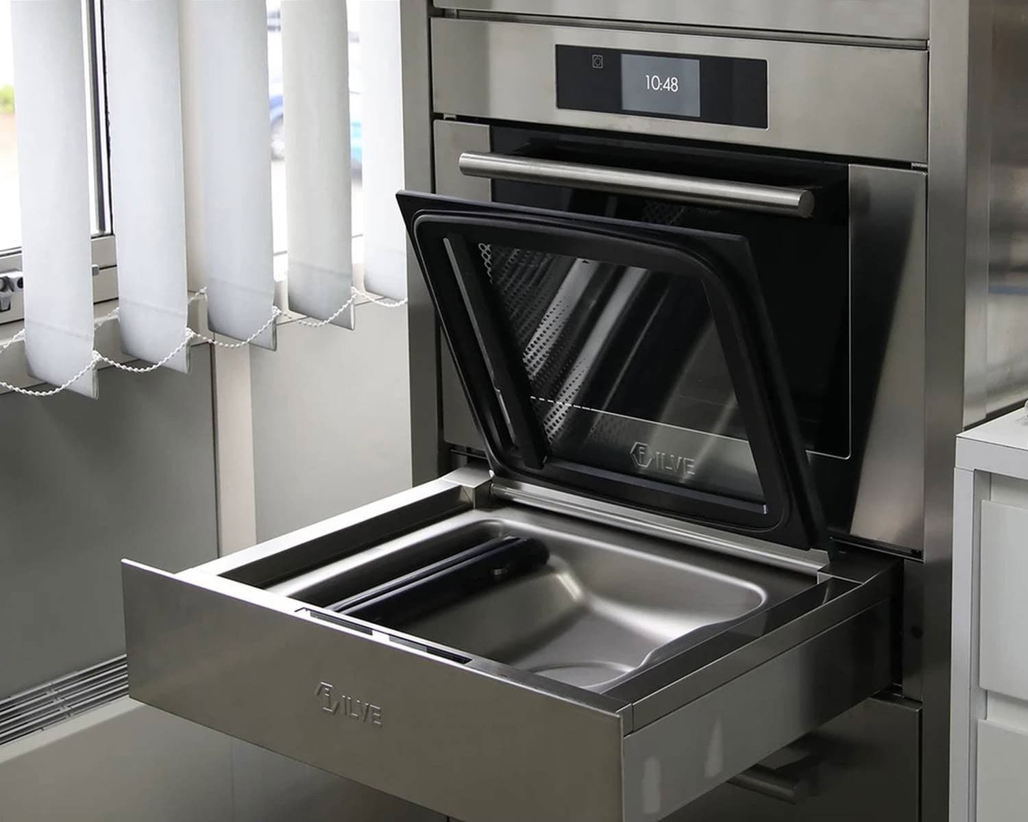 Такие устройства традиционно «прячутся» в выдвижном кухонном ящике, а их установка предусматривается на этапе проектирования кухни. Это решение можно было бы назвать идеальным, если бы не заоблачная — без преувеличения! — цена: в среднем 150-200 тысяч рублей, и даже больше.