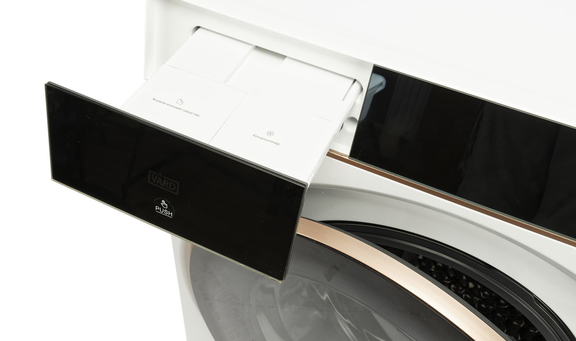 Стирально-сушильная машина Vard VWD514S заинтересовала нас несколькими любопытными особенностями: она снабжена системой автодозировки геля и кондиционера, подсветкой барабана и функцией автоматического открывания люка после завершения программы. Последняя опция стала уже привычной для современных посудомоечных машин, а вот у стиралок мы встречаем ее впервые.