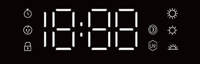 Панель управления Vard VWD514S представляет собой дисплей из темного пластика с цветной индикацией и сенсорными кнопками.