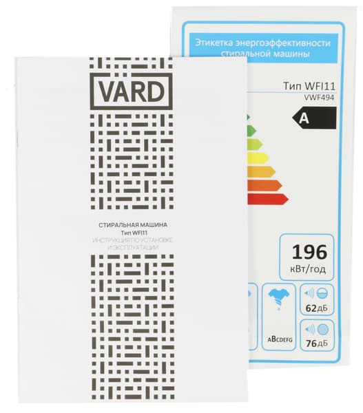 Vard VWF494 отличается достаточно короткими циклами: стирка в холодной воде предназначена для тех, кто спешит. При изменении температуры длительность программы корректируется с учетом времени на дополнительный нагрев: так, в программе «Хлопок» при увеличении температуры до 20, 30, 40, 60 и 95 °C продолжительность составит соответственно 1:10, 1:15, 1:35, 1:55 и 2:23.