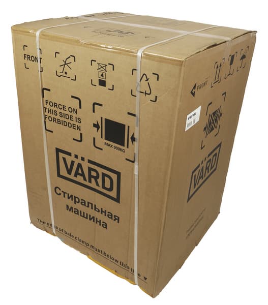 Стиральная машина поставляется в технологической упаковке из коричневого картона и пенопласта, усиленной капроновыми стропами.