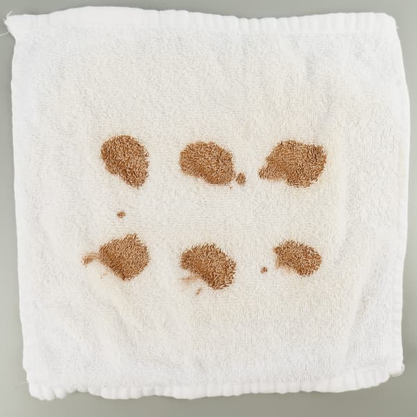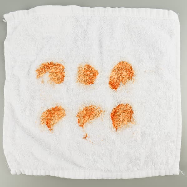 На каждое полотенце мы нанесли одно из веществ: красное вино, соевый соус, кетчуп, кровь и какао.
