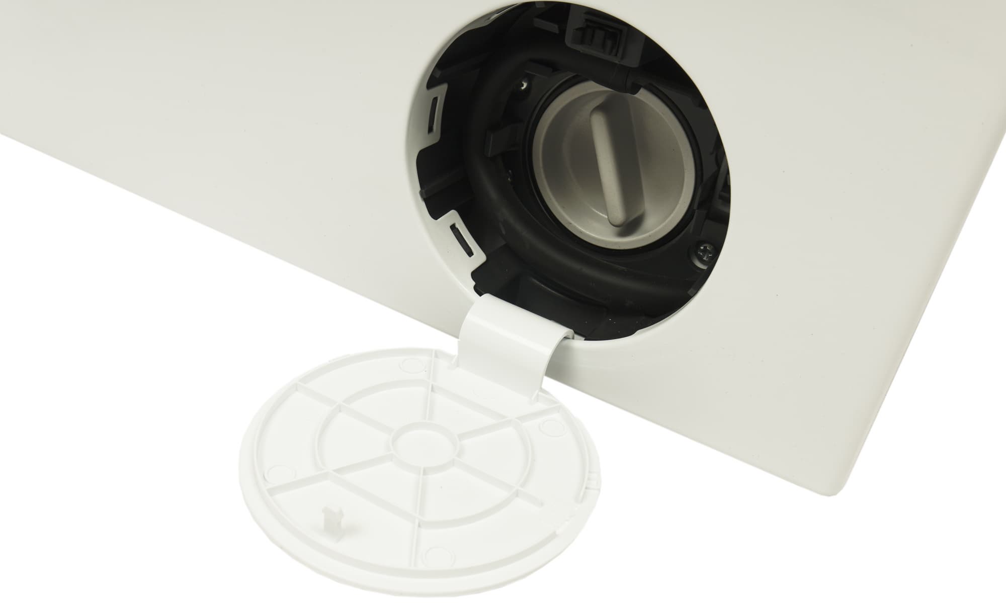 Двухслойная крышка люка распахивается примерно на 160°. Внутренняя часть стеклянная, наружная панель — из гладкого полупрозрачного пластика.