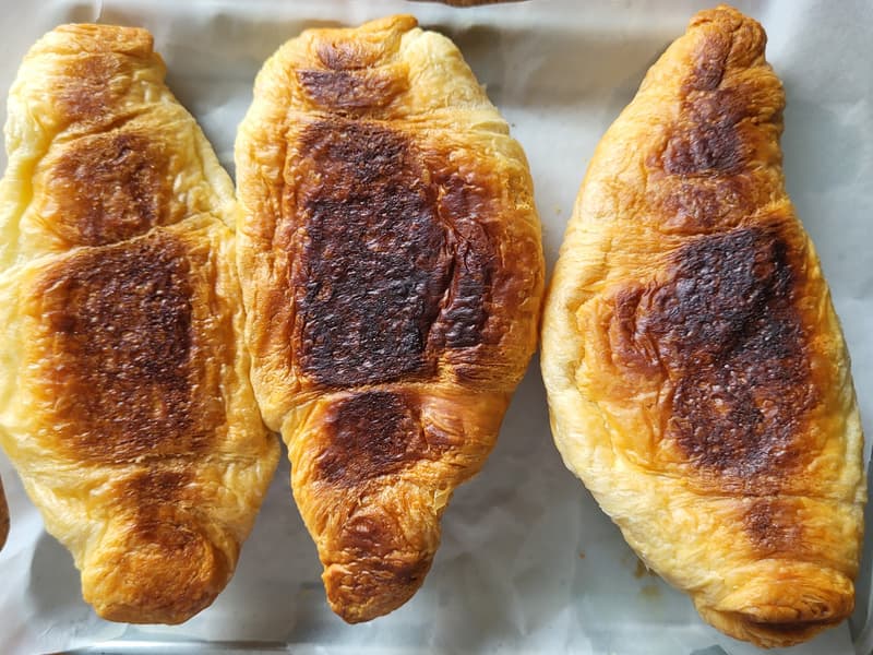 Когда мы спохватились, верхняя часть одного круассана уже немного подгорела — мы тут же переставили их на уровень ниже и спокойно дождались окончания процесса.