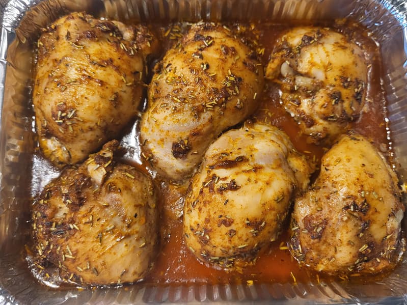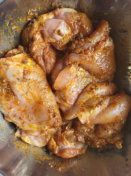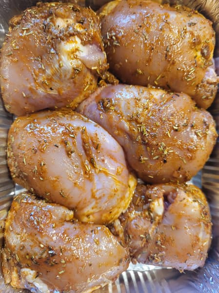 Сделали маринад, смешав розмарин, тимьян, паприку, соль, перец, оливковое масло и лимонный сок.