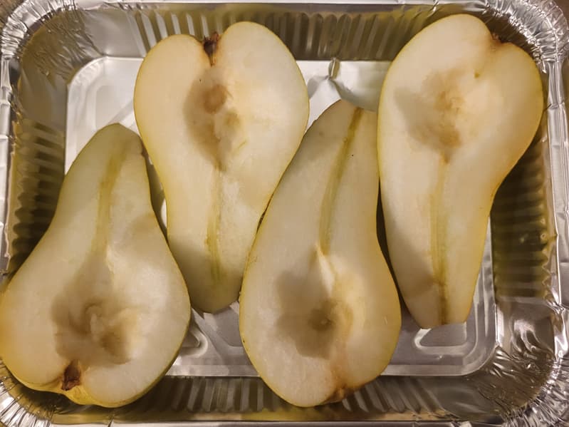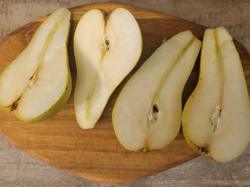 Разрезали груши на половинки.