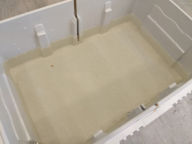 Чистая вода, налитая в бак перед началом теста, приобрела через 30 часов работы устройства отчетливо желтоватый оттенок.