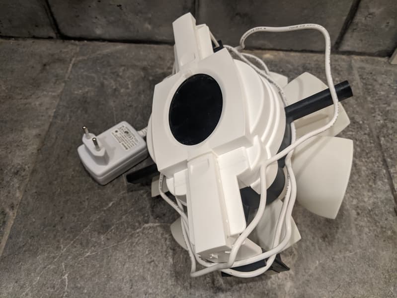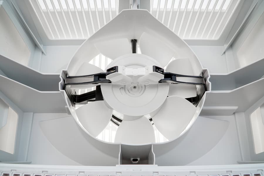 В крышке устройства, над фильтром, расположены семилопастной вентилятор диаметром 200 мм и привод роторов.