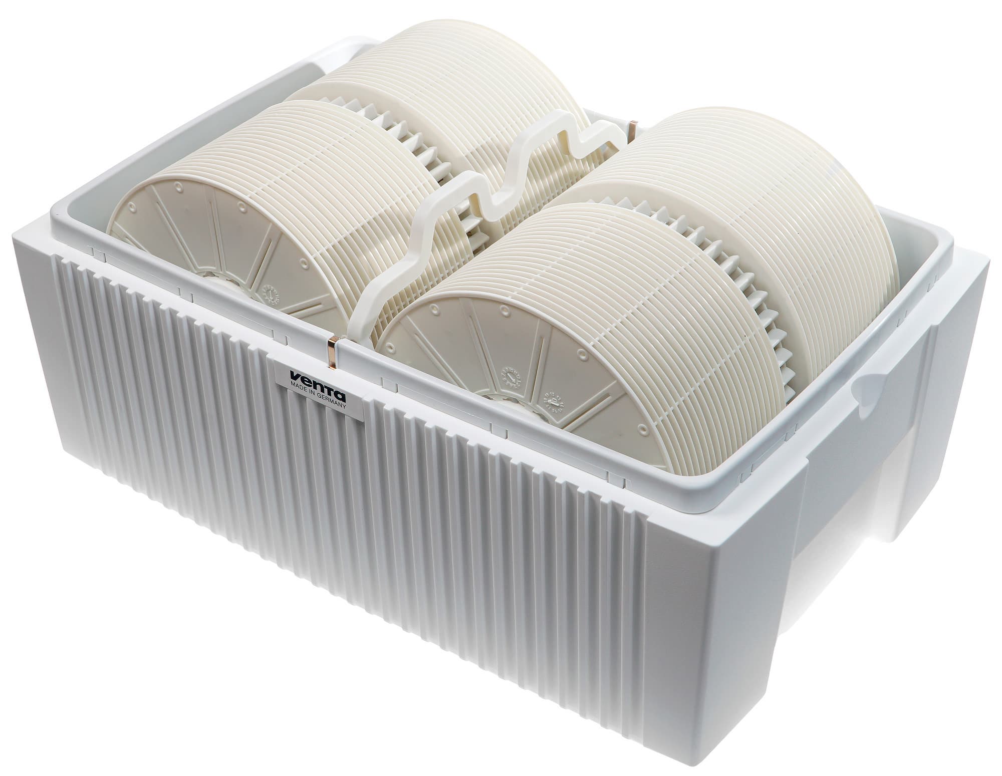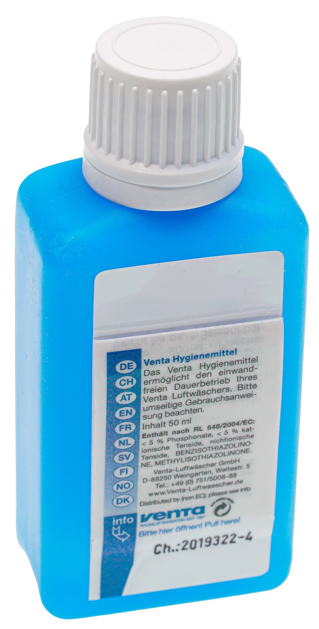 Каждые 14 дней из бака мойки надо выливать грязную воду, промывать нижнюю часть корпуса и пластинчатый барабан под краном, после чего заливать в устройство свежую воду с гигиенической добавкой Venta (дозировка указана на флаконе с жидкостью). Можно использовать воду без гигиенической добавки, но тогда интервал между чистками придется сократить до 3-4 дней.