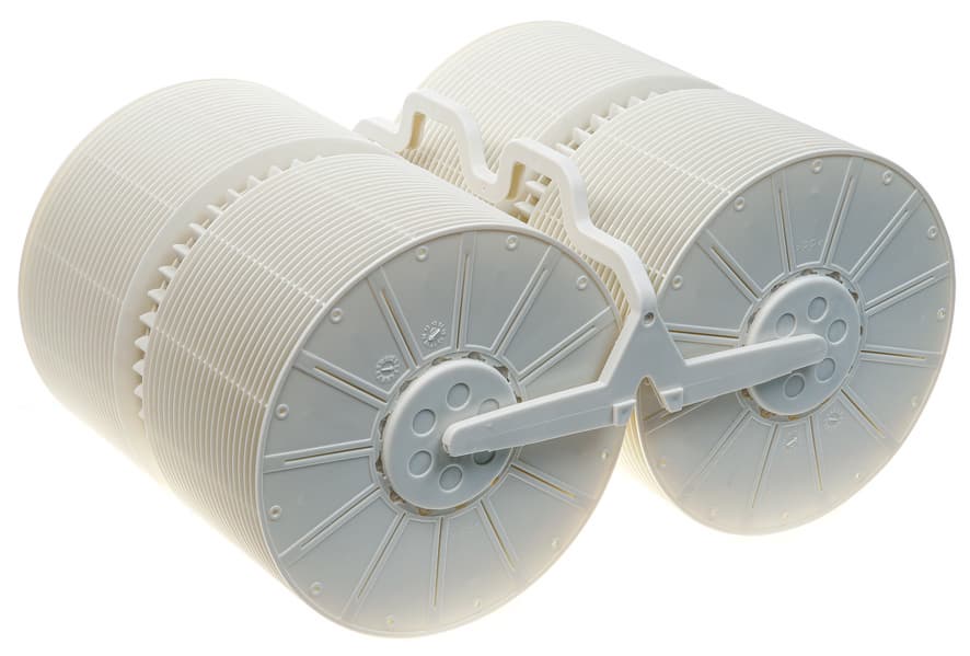 Роторы представляют собой четыре пакета по 22 тонких пластиковых диска, смонтированные на двух параллельных осях. Между пакетами на каждой из осей расположена зубчатая передача, приводящая фильтр в движение.