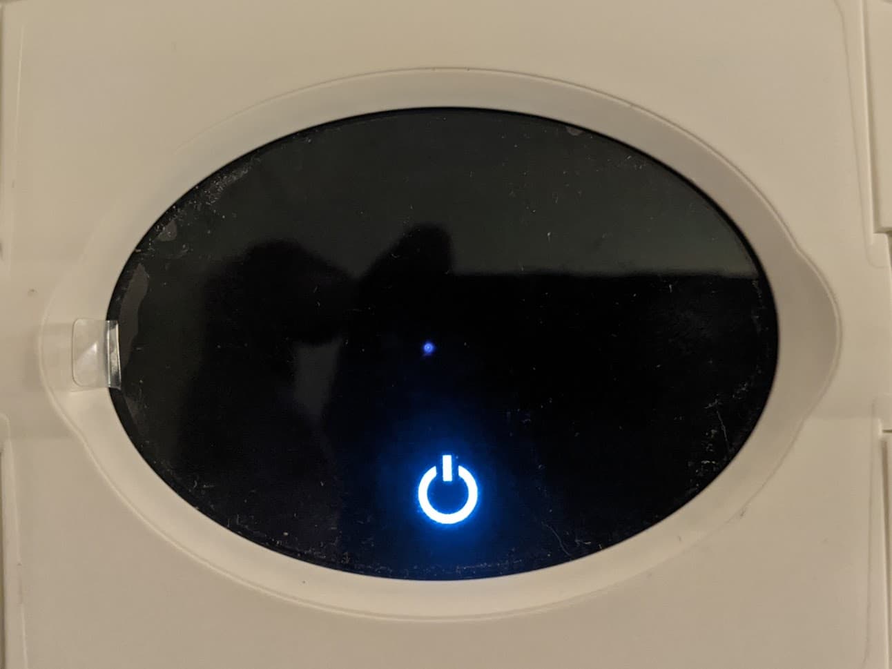 Овальный LED-дисплей устройства подсвечен голубым светом. В режиме ожидания на нем горит только символ включения.