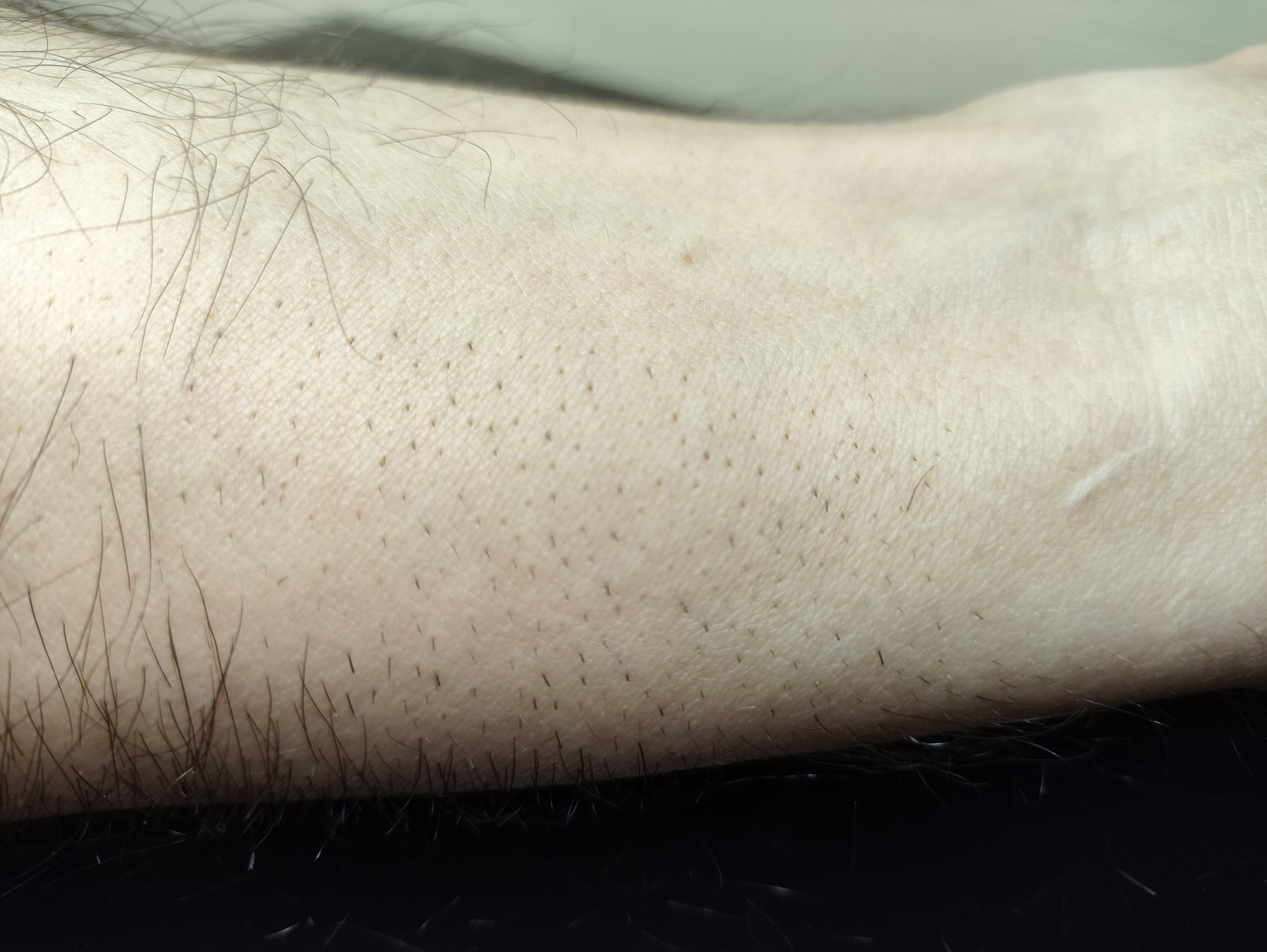 Наконец, проверим, как триммер справится с удалением волос на теле. Для этого теста мы взяли волосатую руку и воспользовались триммером без гребня (с гребнем у нас ничего не получилось).