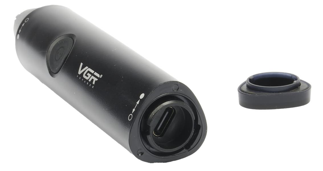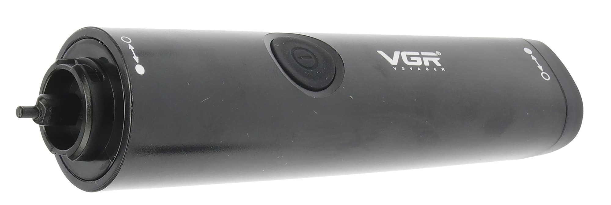 На лицевой стороне мы видим логотип VGR. Под ним располагается светодиодный индикатор, сверху — резиновая кнопка включения/выключения.