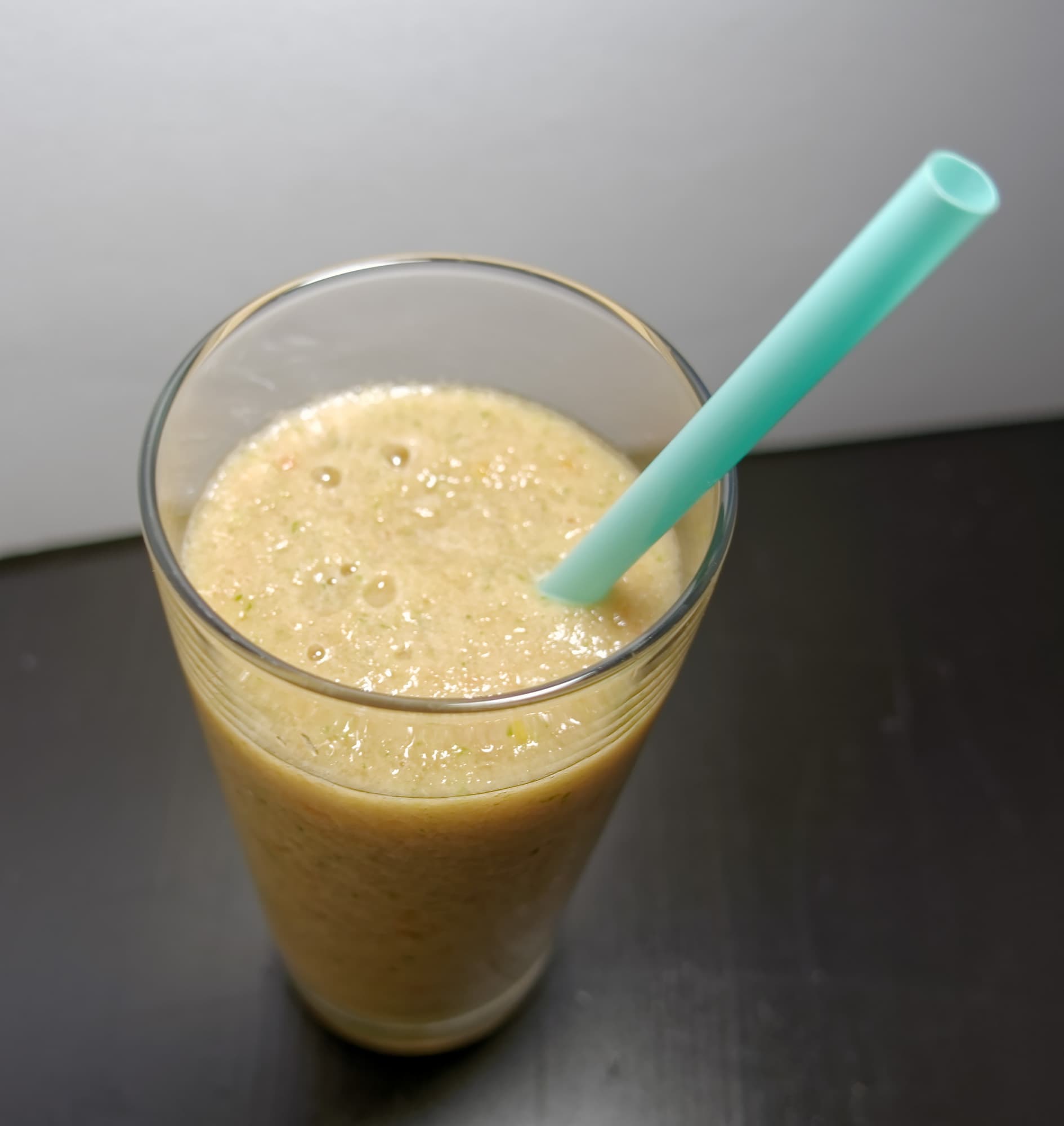 Мы давали прибору эту задачу, ожидая сложностей с ее решением. Волокнистые овощи и зелень — непростые продукты для обработки. Но наш подопытный справился с этим смузи легко.