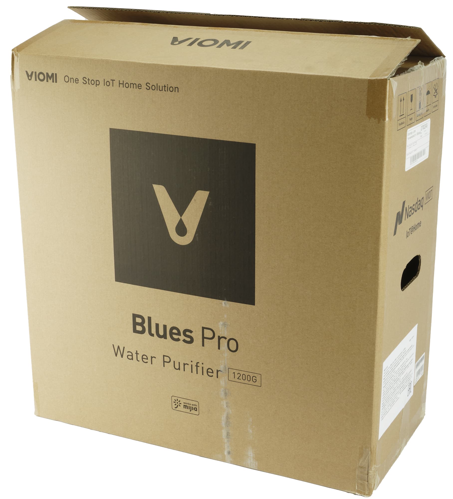Система обратного осмоса поставляется в коричневой картонной коробке с минимумом информации: логотип производителя, название модели и транспортировочные инструкции.