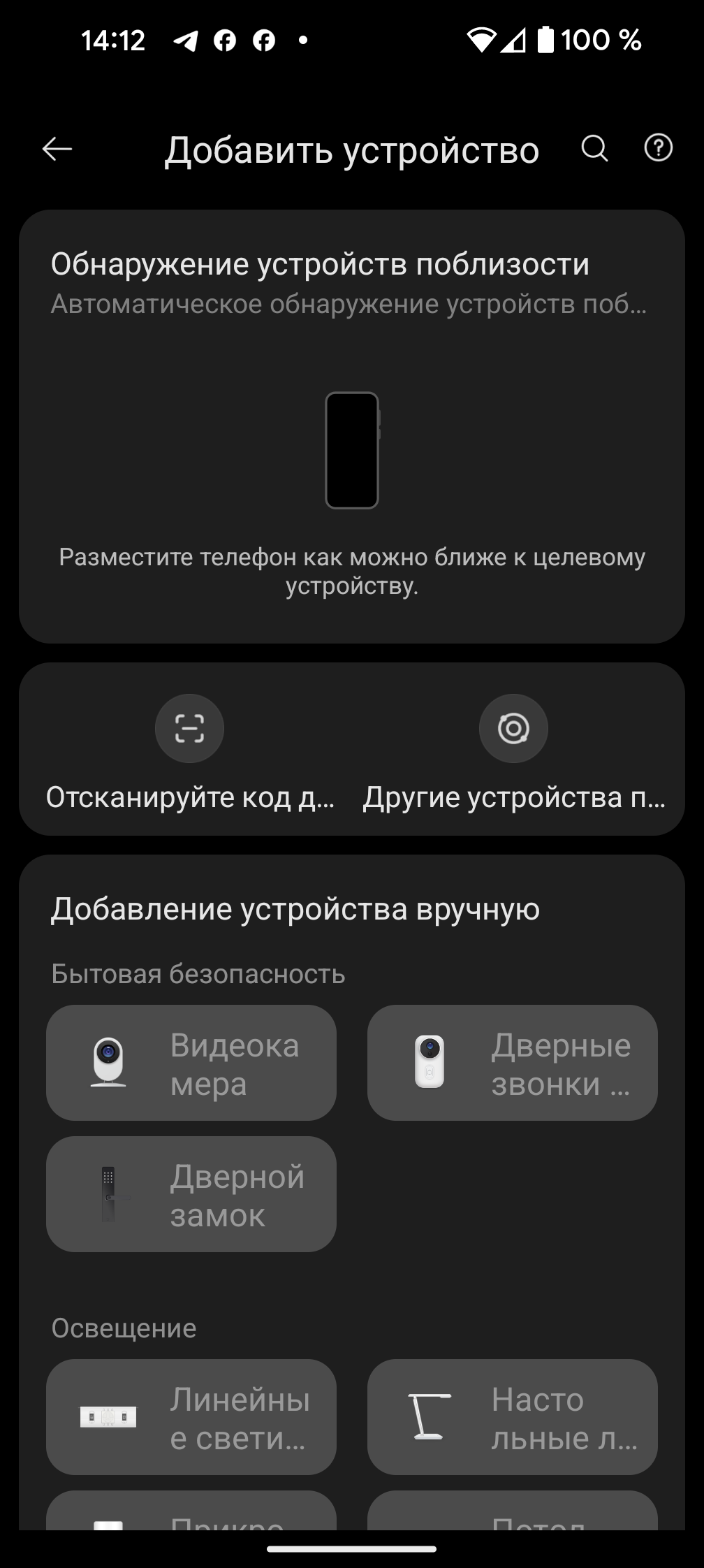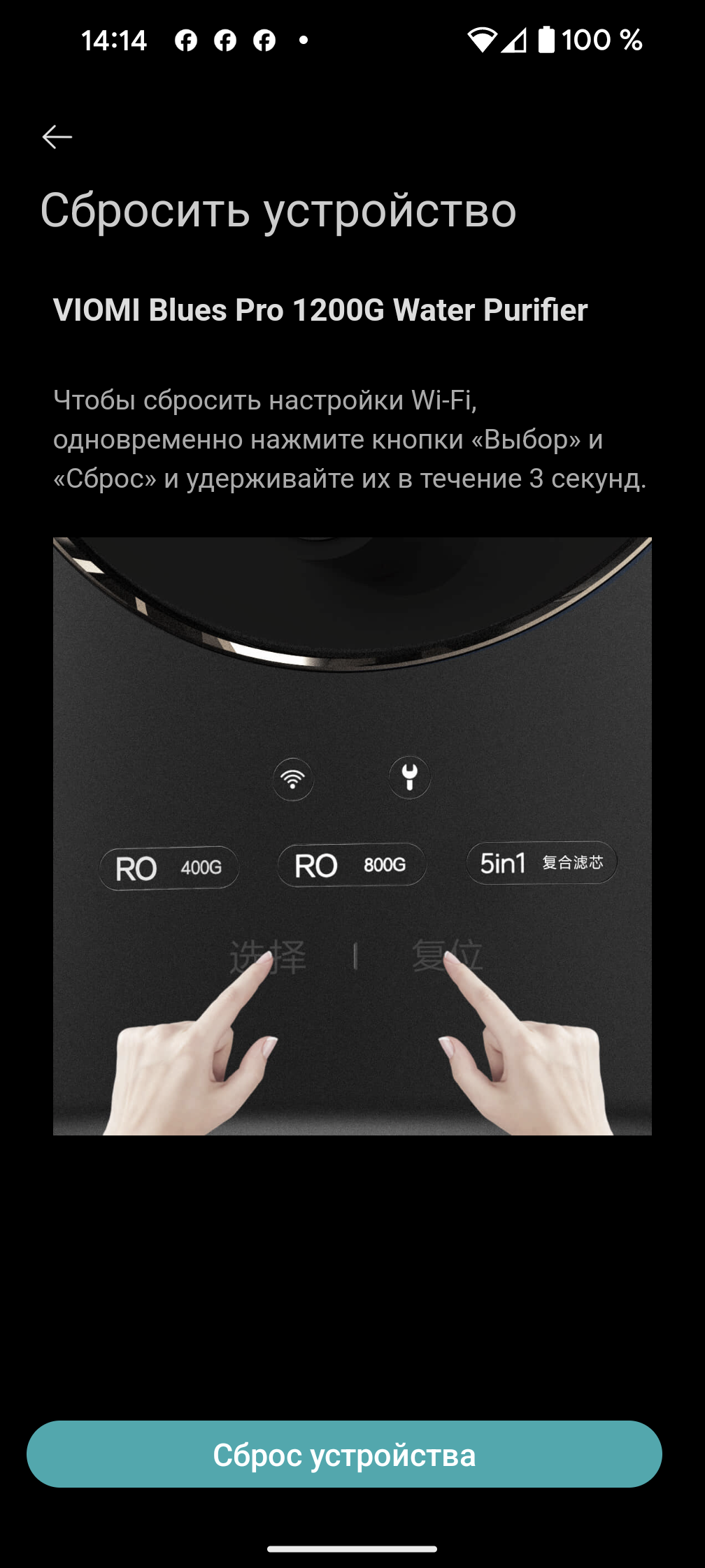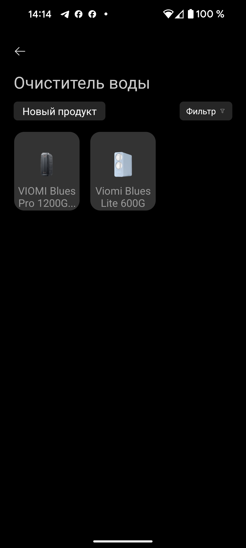 Чтобы начать синхронизацию, необходимо воспользоваться ссылкой «добавить устройство» в верхнем правом углу главного экрана. Автоматическое обнаружение в нашем случае не сработало, поэтому пришлось воспользоваться ручным выбором: Viomi Blues Pro 1200G можно найти в разделе «Кухонная техника»/«Очистители воды».