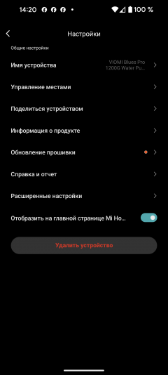 В разделе настроек пользователь может передать управление устройством членам семьи, переименовать его, переназначить в другое помещение, обновить встроенную микропрограмму и ознакомиться со справочной информацией.