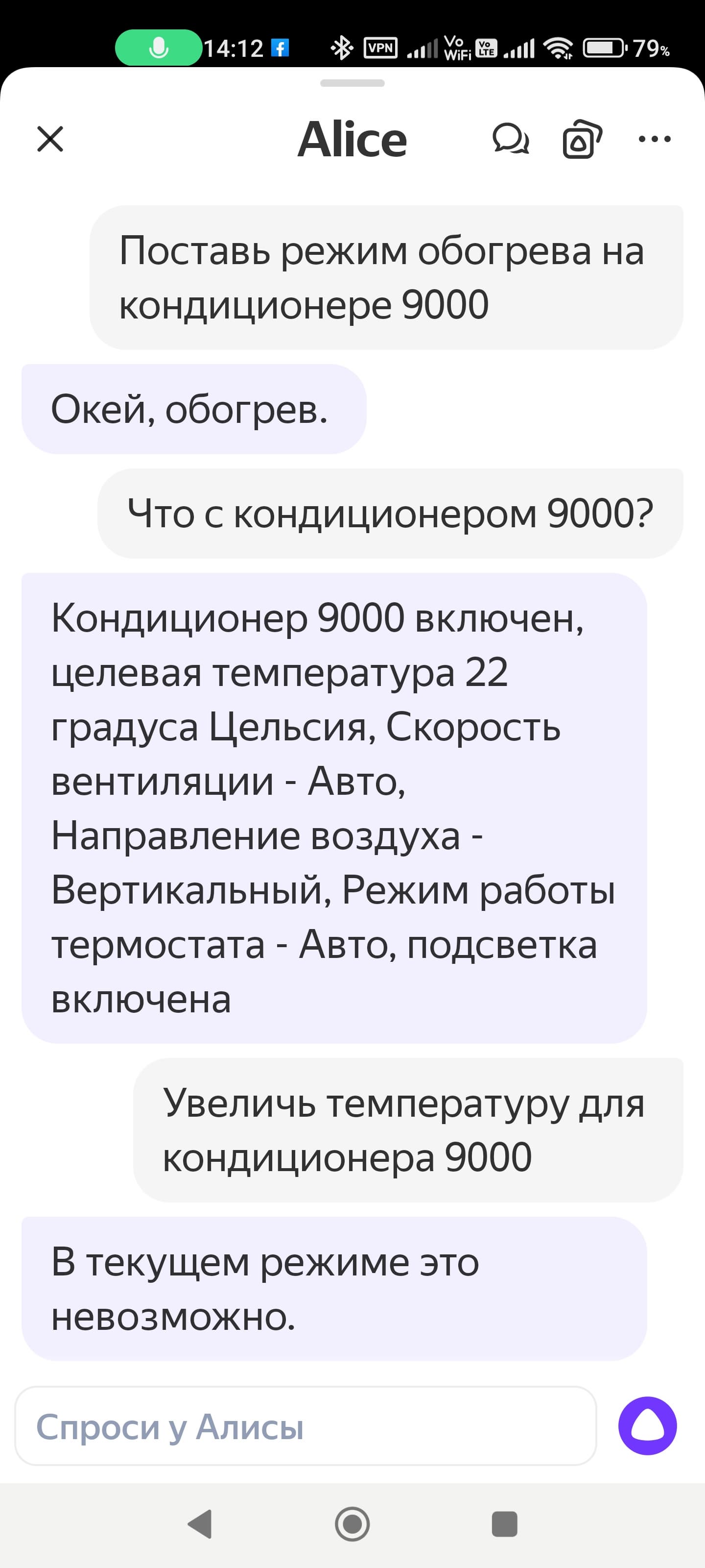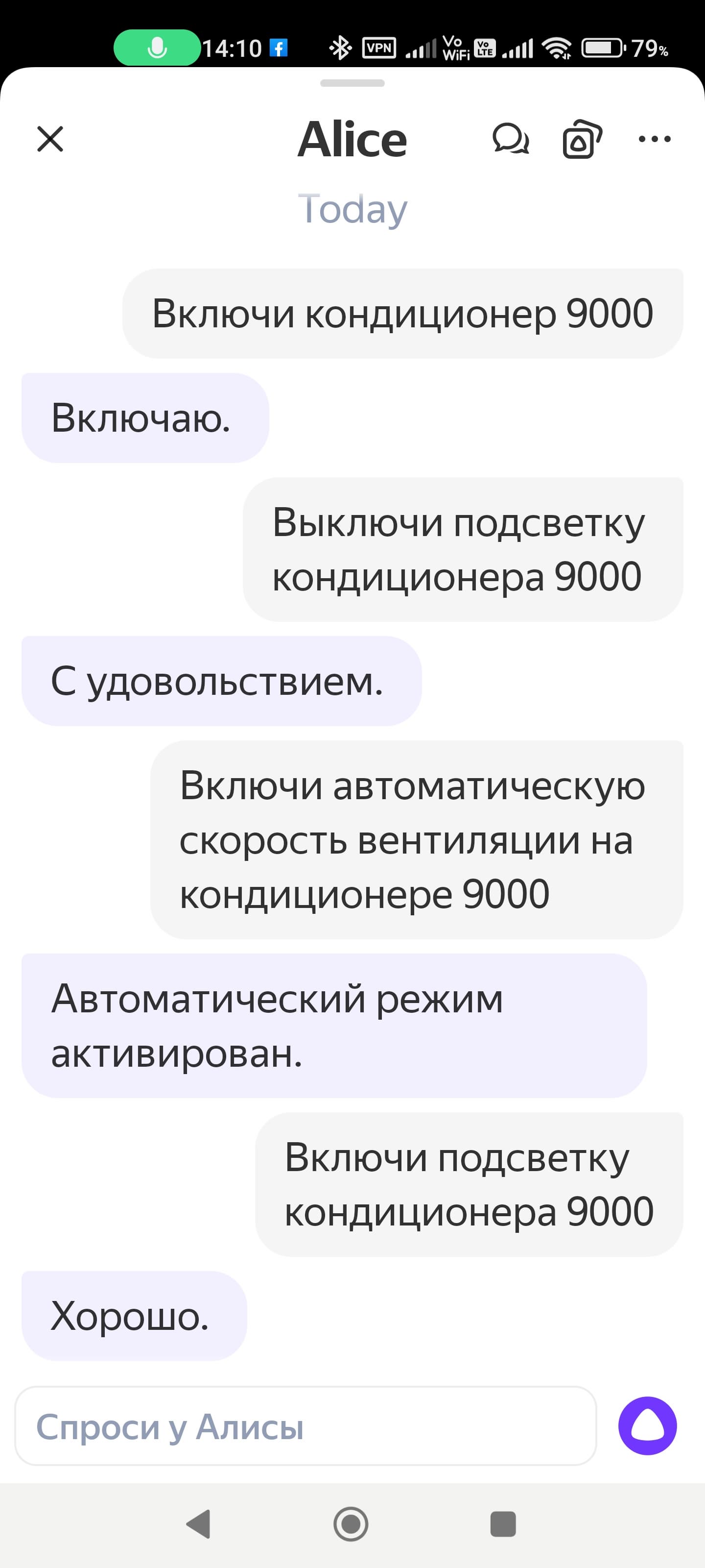 Также мы опробовали режим голосовых команд, которых довольно много. С большинством из них Алиса вполне успешно справилась, но вот с одной (см. в самом конце чата) возникла проблема. Будем надеяться, что ее устранят — команда, в принципе, нужная.