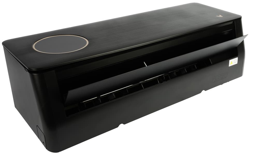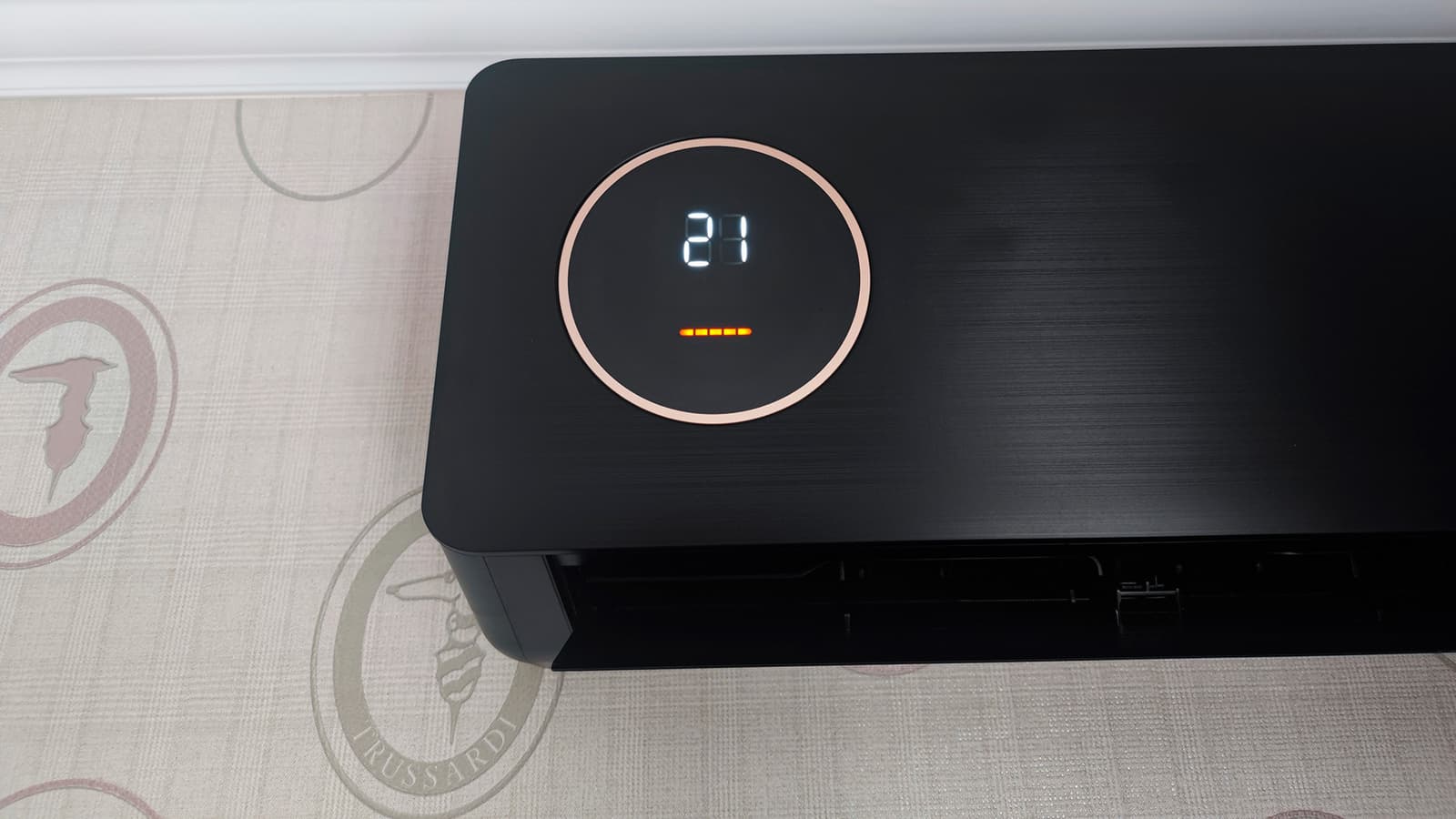 С ним гармонирует обрамление круглого дисплея в левой части панели. На выключенном устройстве мы не можем оценить все возможности индикатора: более подробно мы рассмотрим его чуть позже, когда инсталлируем и включим кондиционер.