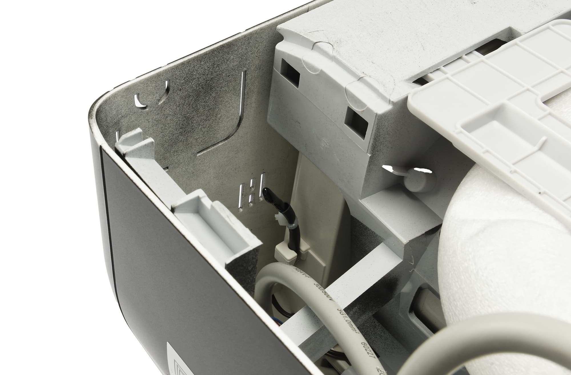 Отсек с электроникой закрывается крышкой с принципиальной схемой агрегата. Рядом с ним размещается блок беспроводного сетевого интерфейса, снабженный наклейкой с MAC-адресом.