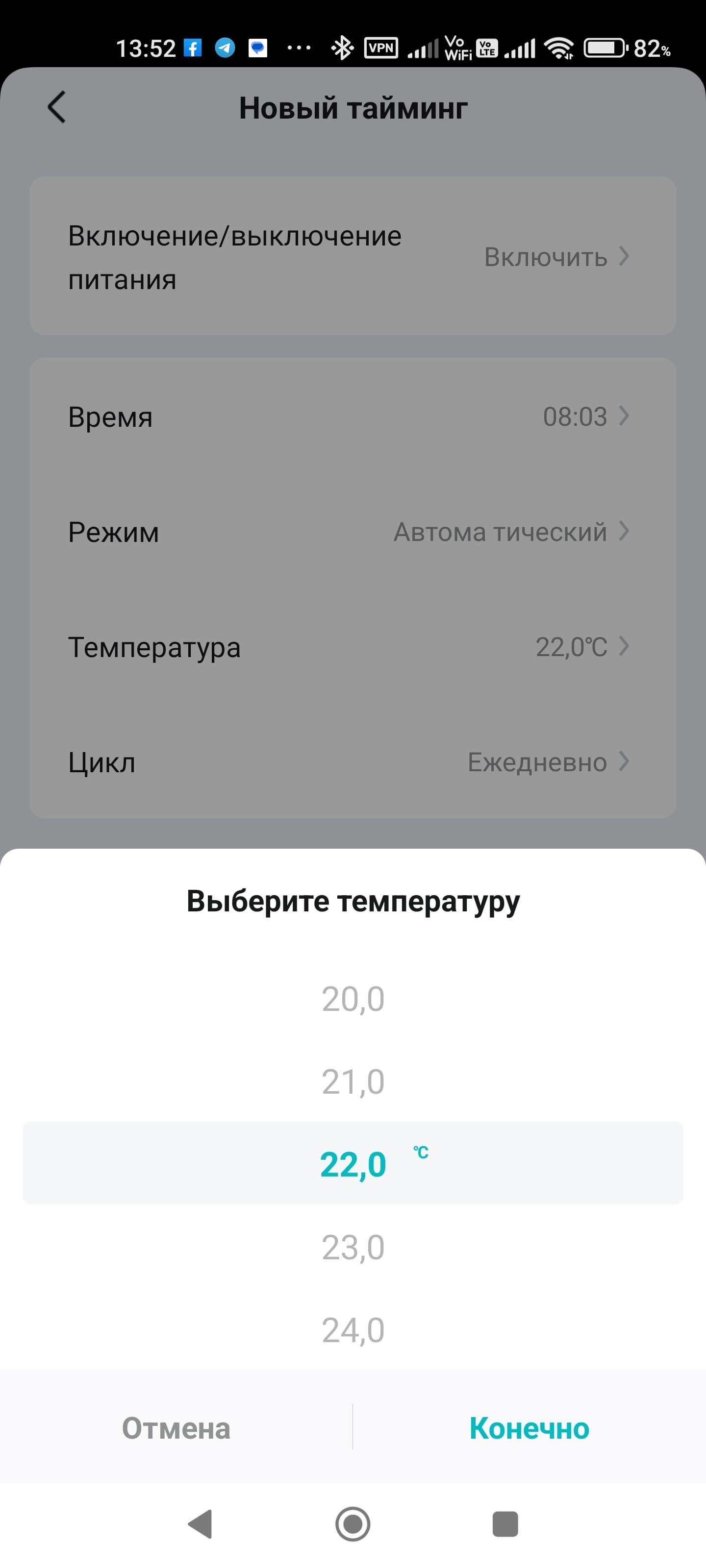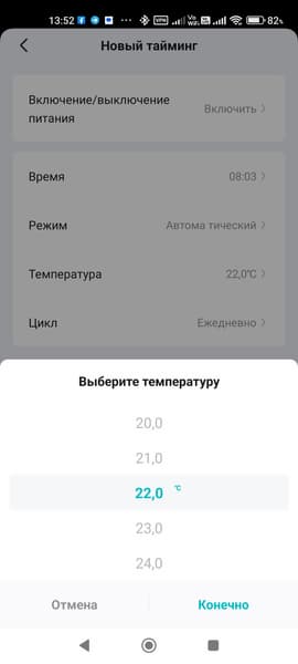 - «Таймер» — установка таймера автоматического отключения в диапазоне от 1 до 24 часов с шагом в 1 час