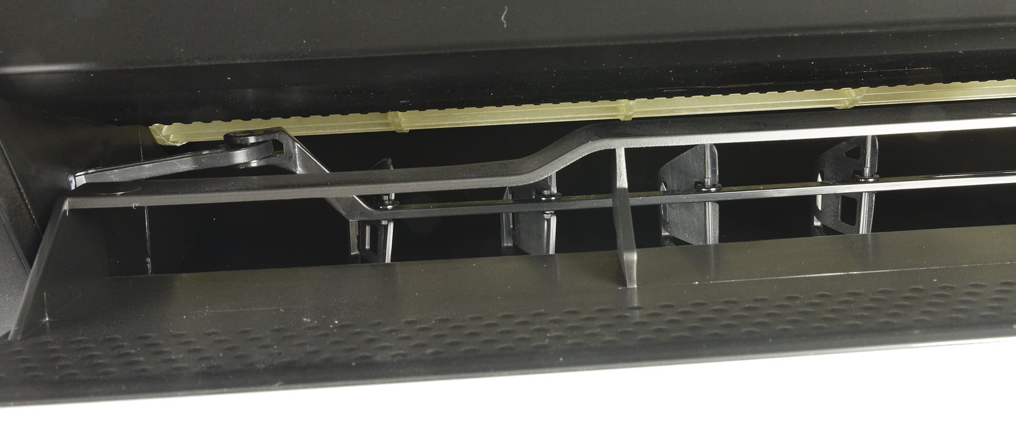 Подвижный элемент покрыт изнутри рельефом из пяти рядов мелких выпуклостей. Создаваемый им «эффект мяча для гольфа», по словам производителя, улучшает аэродинамику и делает обдув мягче.