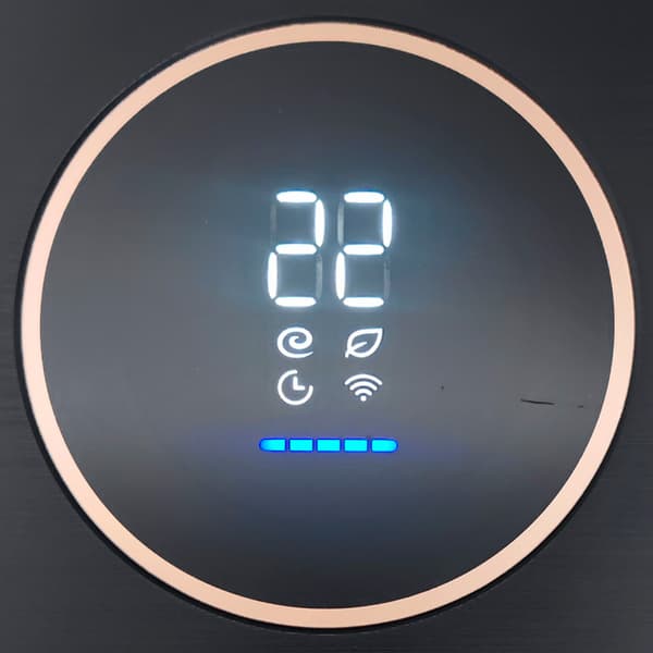 Верхний и нижний сегменты кольцевой кнопки, помеченные символами «+» и «−» позволяют установить целевую температуру в помещении или ввести желаемую задержку таймера автоматического отключения.