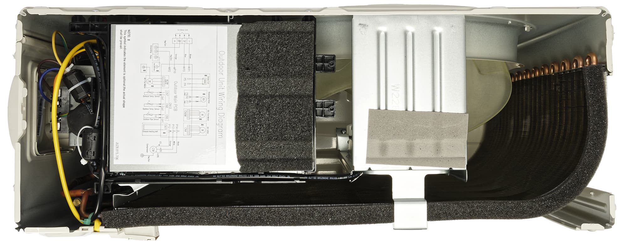 На первый взгляд агрегат практически не отличается от предыдущей модели того же производителя: наружный блок KFR-25W/YC8 мы рассматривали в обзоре сплит-системы Viomi Cross 9000.
