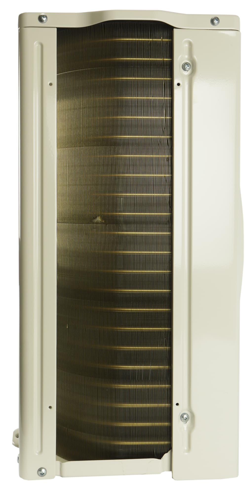Трубки и ребра теплообменника защищены желтым анодированным покрытием — таким же, как и на внутреннем блоке.