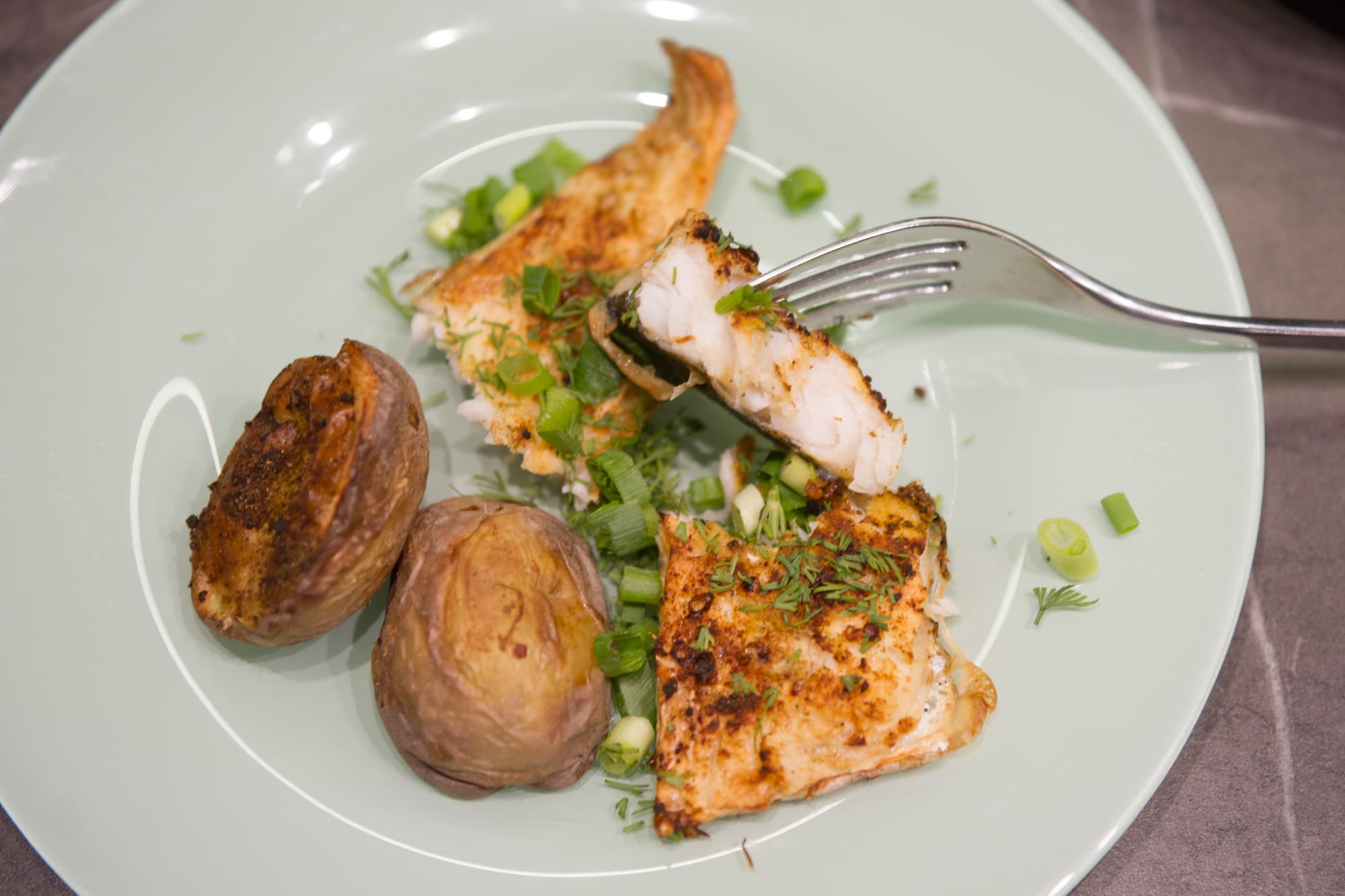 С филе трески Viomi Smart Air Fryer Pro также справился отлично. Рыбную тушку разрезали на три части, сдобрили специями, уложили на фольгу, добавили предварительно отваренный картофель и без масла отправили в камеру.