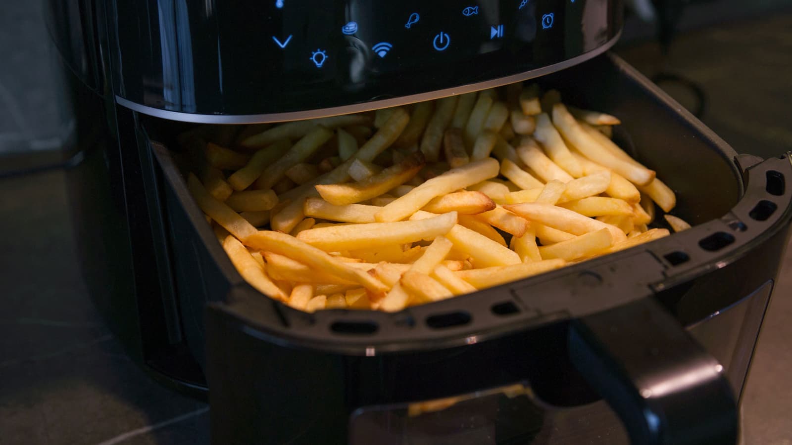 Включили аэрогриль и запустили программу для картофеля-фри. Параметры оставили предустановленные — 200 °C на 25 минут. В процессе мы регулярно заглядывали в корзину, один раз перемешивали содержимое и уже через 10 минут обнаружили, что картофель полностью готов.