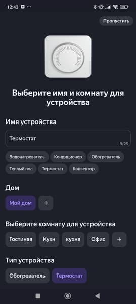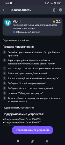 К Алисе обогреватель подключается стандартным образом — выбираем Viomi в списке поддерживаемых устройств, после чего указываем имя обогревателя и его расположение.